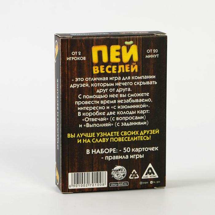 Купить игра для компании "пей веселей" 50 карт от 180 руб. с доставкой до пункта выдачи в Морозовске. Интернет магазин ДекаМаркет. Оплата при получении.